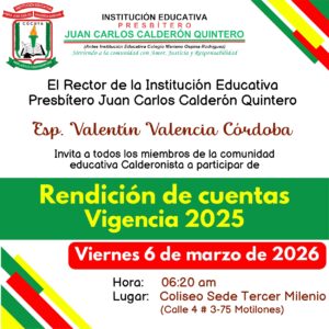 Nos llena de alegría contar con su presencia en este espacio, donde juntos trabajamos por el bienestar y el desarrollo integral de nuestros estudiantes. Nuestro compromiso es firme: convertir a la Institución Educativa Presbítero Juan Carlos Calderón Quintero en un referente de formación integral, valores humanos y excelencia académica en la comuna 7 de la ciudad de Cúcuta.